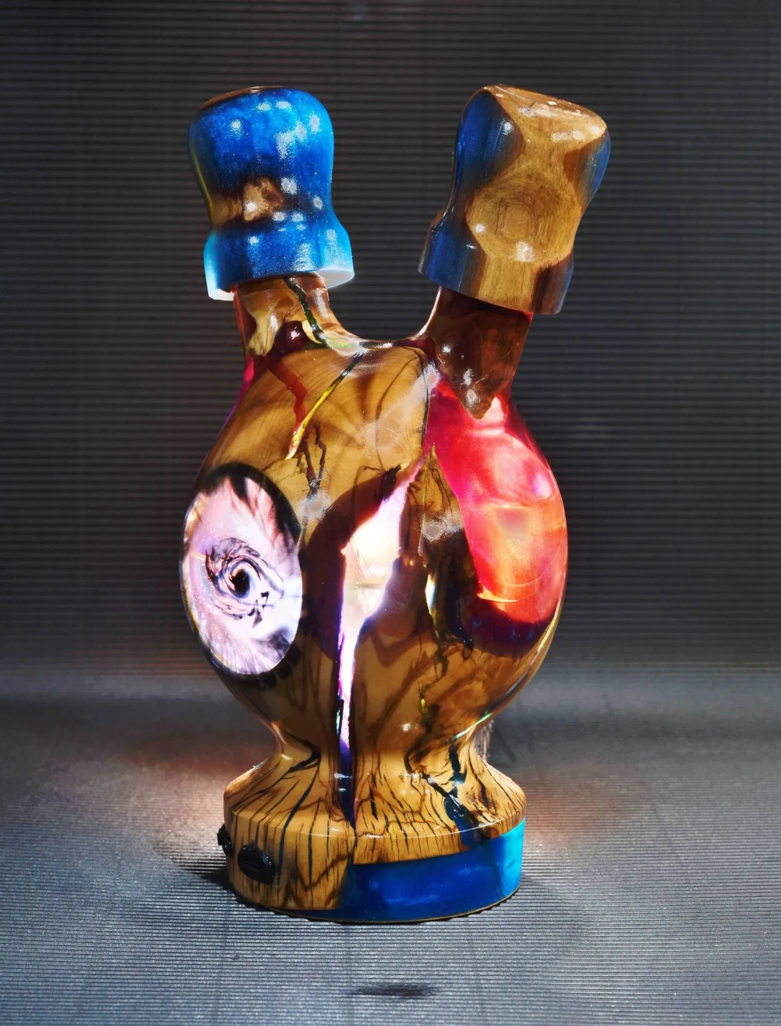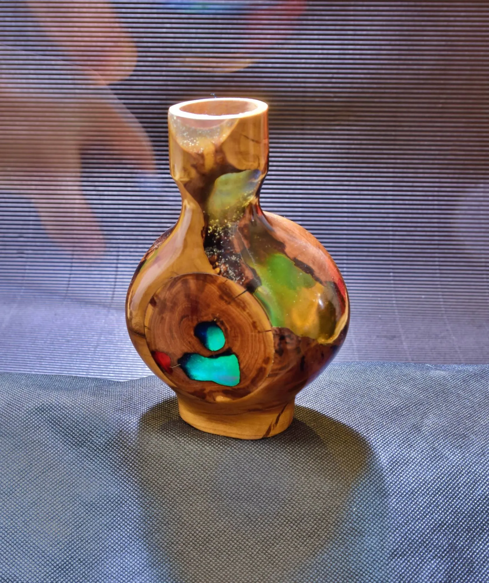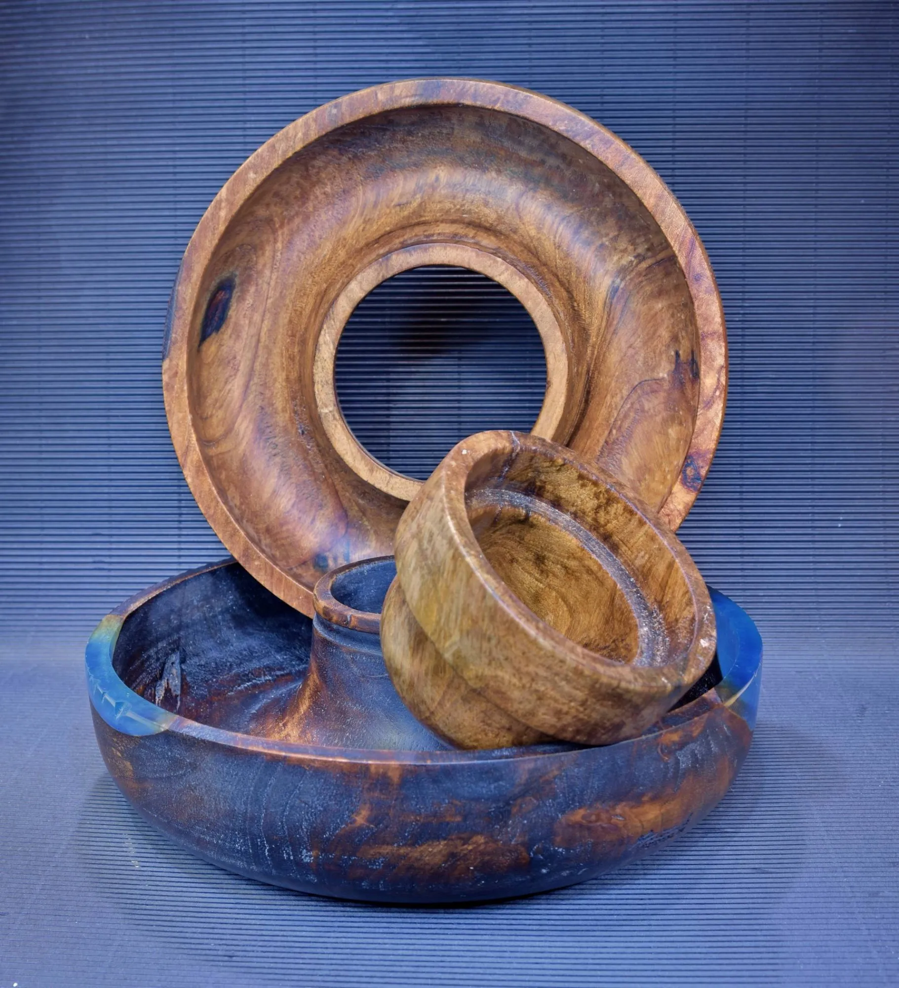 Postupně se dostal k tvorbě, která ho úplně pohltila. Dřevo v kombinaci s epoxidem. „Vždycky se podívám na kus dřeva, pár dní kolem něj chodím a přemýšlím, co by z něj mohlo být. Pak ho vezmu do ruky a něco vznikne.“ Každý kus je originál a vychází z konkrétního materiálu.
