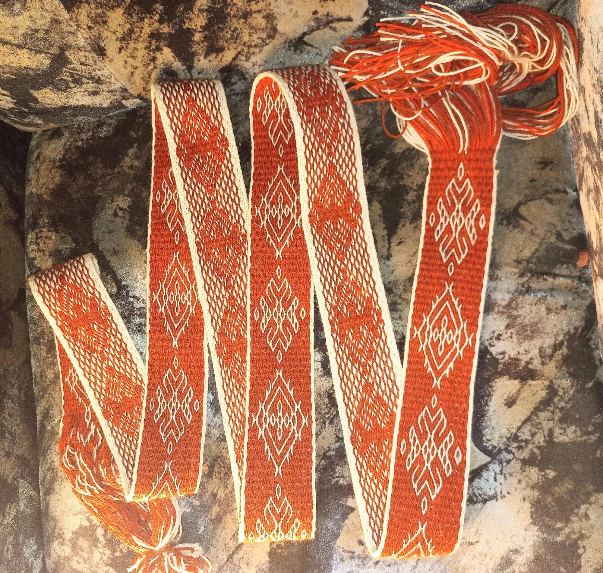 „Je to tkaní na malých dřevěných nebo kostěných destičkách. Vytváří se ozdobné pásky, lemy nebo čelenky, “ vysvětluje.