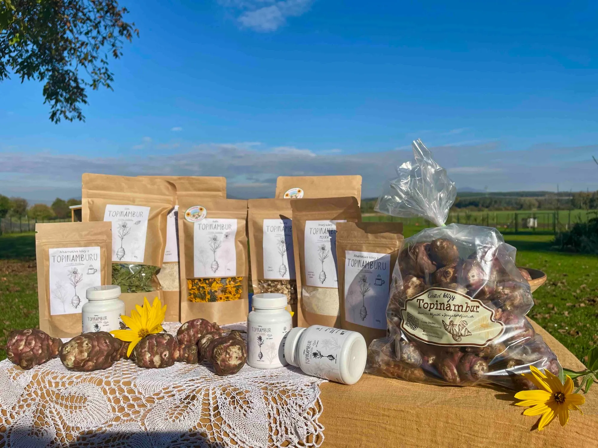 Dnes rodina topinambury pěstuje na 14 hektarech a vyrábí z nich mouku, sušené hlízy, čaj z květů i listů a dokonce doplňky stravy.