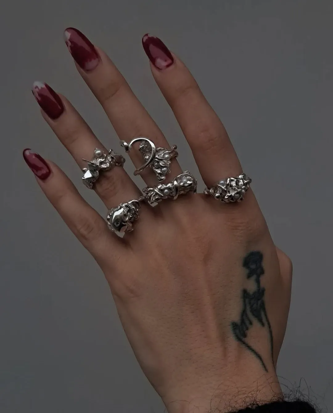 „Do forem odlívám jen minimálně. Šperky tvaruju hlavně ručně, pomocí ohně a nástrojů, v přímém kontaktu s materiálem. Každý kousek je originál, “ dodává.